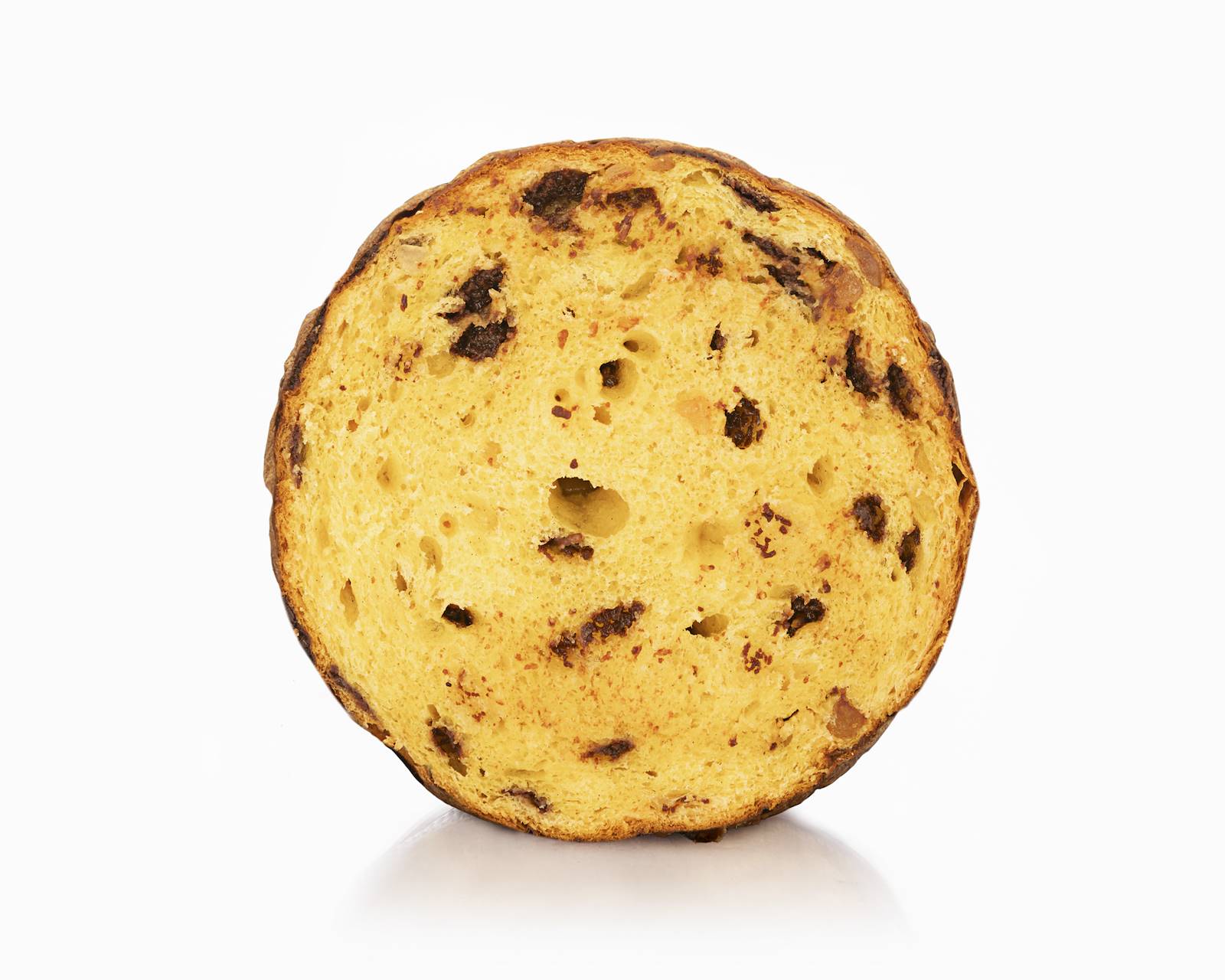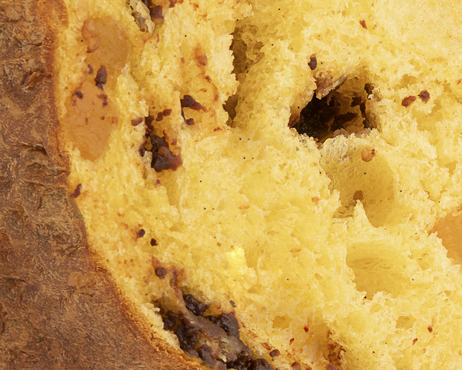 L’eleganza della pera gioca con il cremoso gianduia in un impasto luminoso e soffice costellato di vaniglia Tahiti e avvolto dal profumo di burro di latteria. La cupola milanese, per tradizione incisa a croce, rivela l’alternarsi e della frutta delle preziose pepite di gianduia, che svelano l’incanto al primo assaggio.